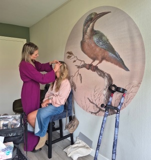 Marie kwam mij thuis ophalen en omdat de rolstoel niet mee ging nam ik een dik zitkussen mee want die banken daar zijn voor mij niet te doen. Een rugzak gevuld met regenjassen en zelfs mijn winterjas, ging mee, want ja, als het nat is krijg je het snel koud en dat wil je ook niet. Met goede zin vertrokken we naar Bloemendaal. Duidelijk was meteen dat we beiden ons huiswerk niet hadden gedaan en de nummers niet voldoende hadden ingestudeerd. We hoopten weg te komen met ‘lalala’, haha. Het was druk in het straatje bij aankomst en natuurlijk waren de twee invalideplekken voor de deur bezet. Bij navraag bleek er nergens anders een invalideplek te zijn, dus zat er niets anders op dan dat Marie mij er bij de ingang uitgooide en op zoek ging naar een beschikbare parkeerplaats. Op zich maakte het ook niet uit, want we zouden aan het einde van de avond voor de deur opgehaald worden door de BOB. Goed geregeld hè!